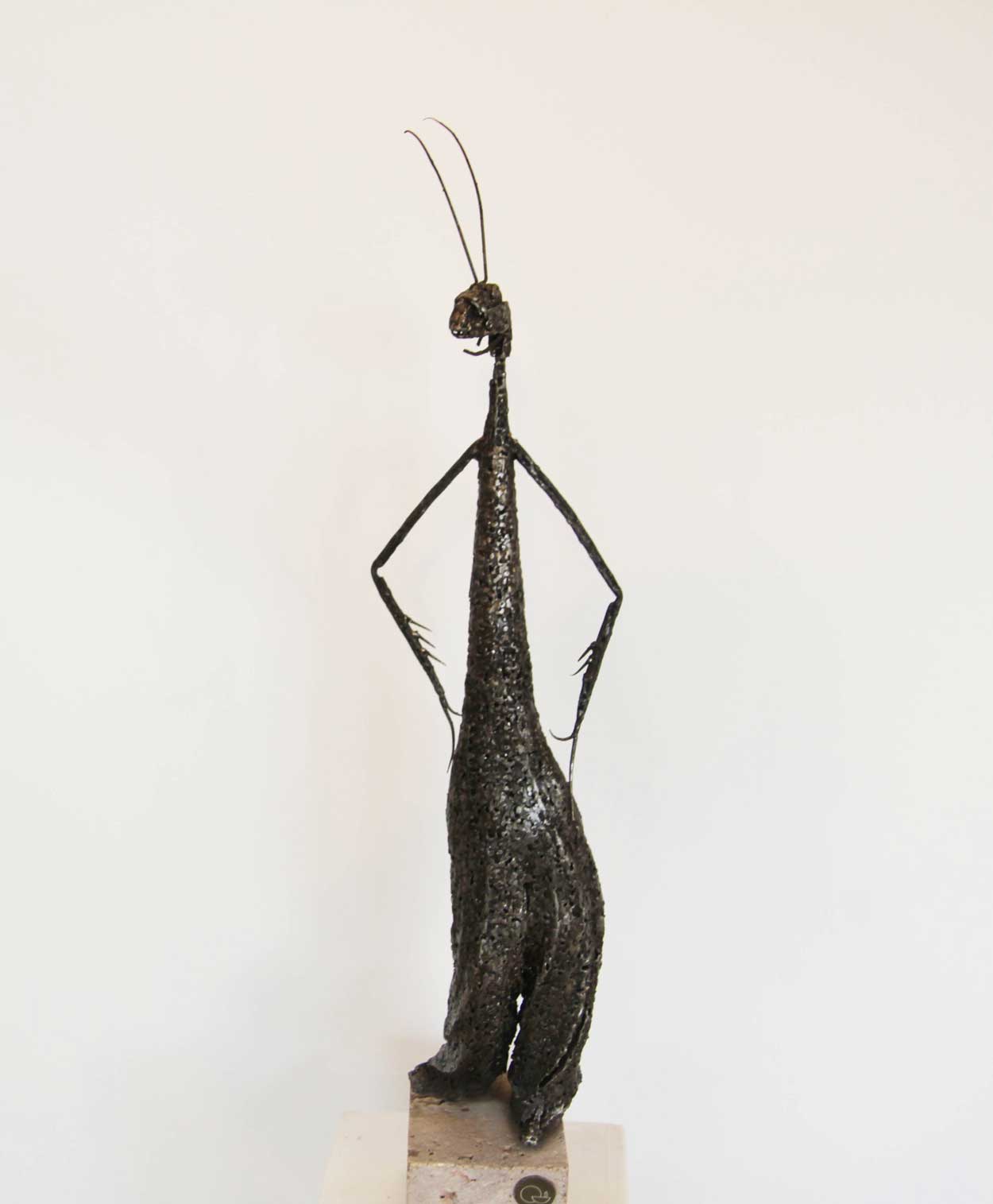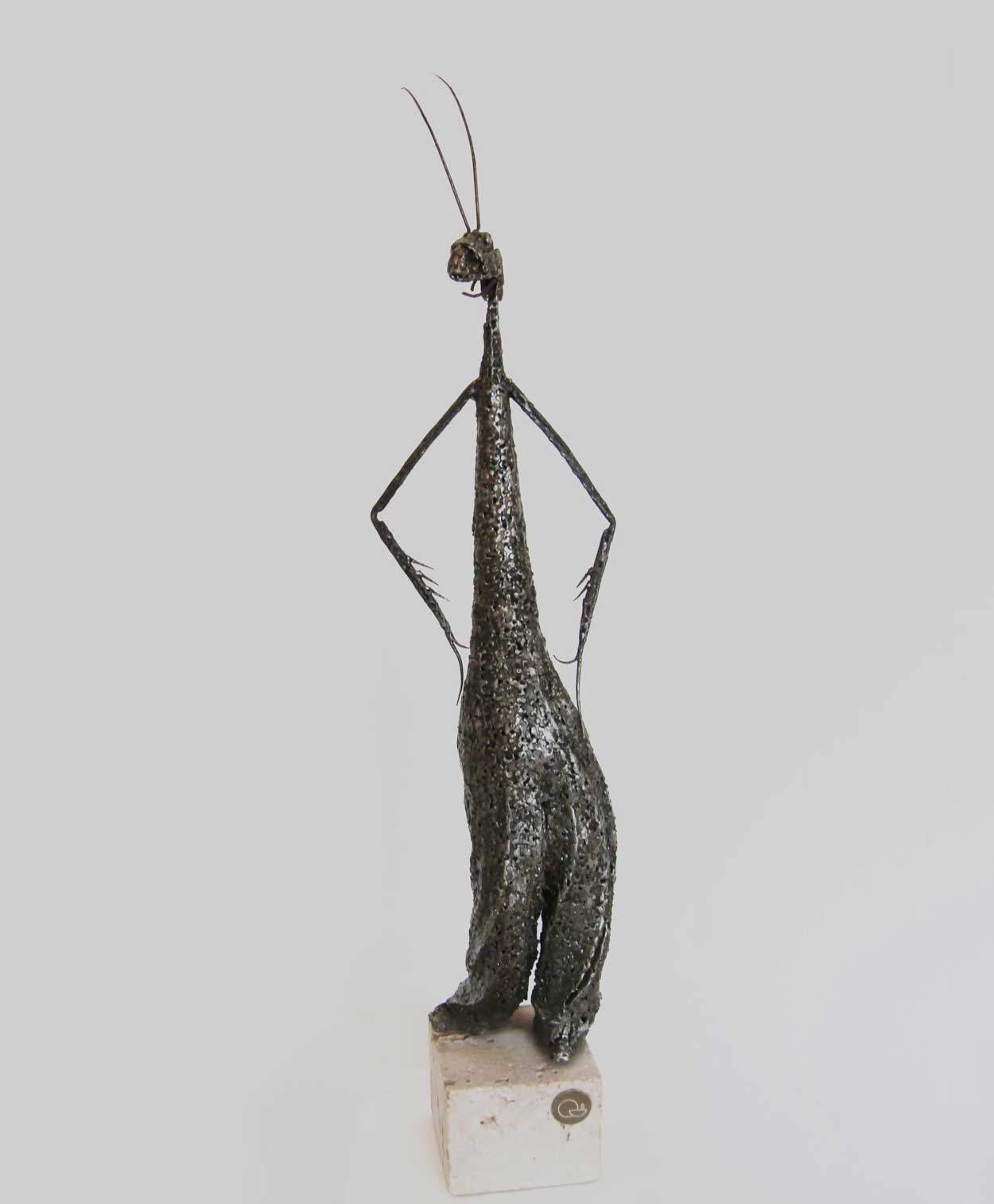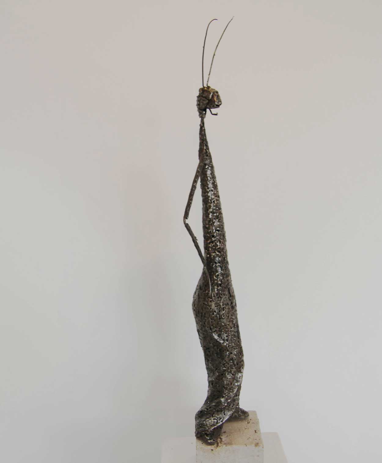 Sculptural form achieves the necessary strength and rigor, while the surface gives vibrancy, blink light and shadow features are works of Zdenko Slibar. The relative immobility and movement finds tension of visual excitement. Original technique, technologically complex metal processing (which has a lot of similarity in the content layer) achieves expressiveness that synthesizes classical (in respect of compositional harmony and moderation mass) and modern (in open play and molten surfaces). The relationship clears silhouettes and mighty multiplicities specimens surface. Tension port and compacted crushed particles that suggest a continuous growth and renewal ......... And so appeared cycle of insects and real and imagined forms, which must have the same or a related starting point, which leads them to the traveled antropomorfic character and attitude indicated the details, but still remaining part of the animal world which Slibar is free to compose, extraordinary imagination, which leads him to the threshold of phantasmagoric reality ......... Magnified world is that small, in which Slibar did not enter only some anatomical characteristics (which metamorphosis leads to different designs) but a full analysis of the performance, "character "insect his actors get stories and feature a human.