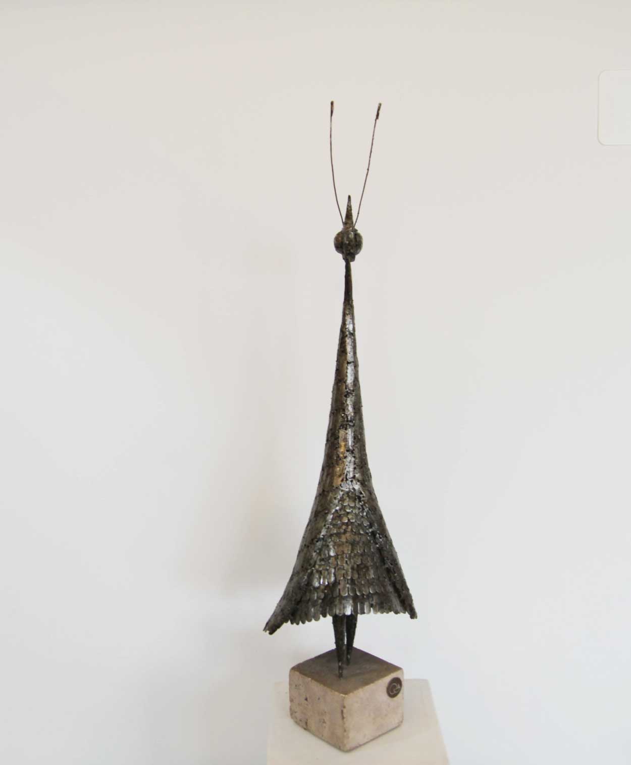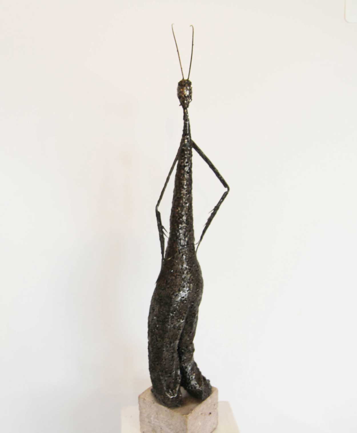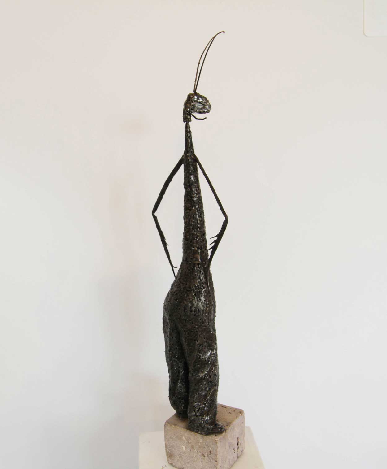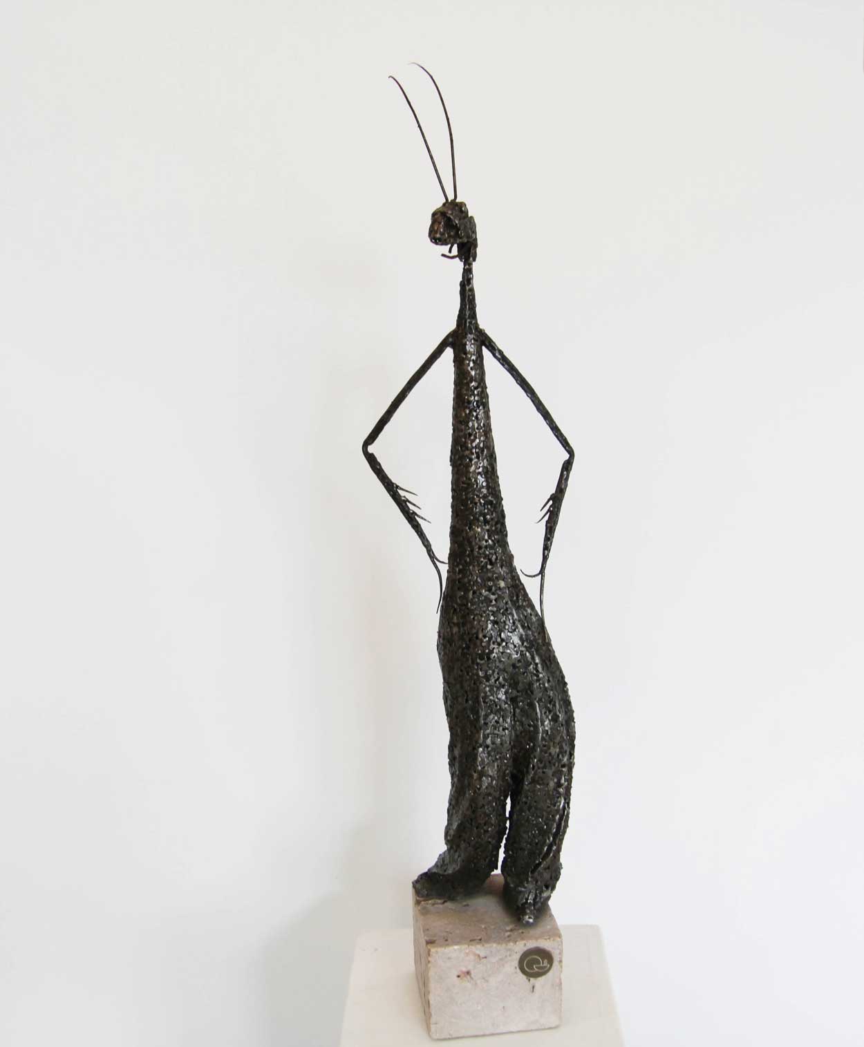 Sculptural form achieves the necessary strength and rigor, while the surface gives vibrancy, blink light and shadow features are works of Zdenko Slibar. The relative immobility and movement finds tension of visual excitement. Original technique, technologically complex metal processing (which has a lot of similarity in the content layer) achieves expressiveness that synthesizes classical (in respect of compositional harmony and moderation mass) and modern (in open play and molten surfaces). The relationship clears silhouettes and mighty multiplicities specimens surface. Tension port and compacted crushed particles that suggest a continuous growth and renewal ......... And so appeared cycle of insects and real and imagined forms, which must have the same or a related starting point, which leads them to the traveled antropomorfic character and attitude indicated the details, but still remaining part of the animal world which Slibar is free to compose, extraordinary imagination, which leads him to the threshold of phantasmagoric reality ......... Magnified world is that small, in which Slibar did not enter only some anatomical characteristics (which metamorphosis leads to different designs) but a full analysis of the performance, "character "insect his actors get stories and feature a human.